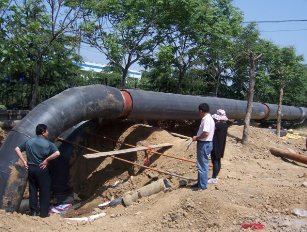 項目概述:2010年泰安市東城區(qū)循環(huán)水節(jié)能改造重點(diǎn)項目,本項目我們采用了預(yù)熱無補(bǔ)償直埋敷設(shè)施工技術(shù)。在供熱管道敷設(shè)方式中,直埋敷設(shè)因?qū)煌ㄓ绊懶 ⒈阌谑┕ぜ霸靸r低等優(yōu)點(diǎn)被廣泛采用。其中,無補(bǔ)償直埋敷設(shè)是一種技術(shù)先進(jìn)且造價較低的敷設(shè)方式,它與有補(bǔ)償直埋敷設(shè)相比,突出的優(yōu)點(diǎn)在于大大減少了固定支座和補(bǔ)償器小室的數(shù)量,僅在管道變徑、較大管徑與不同敷設(shè)方式(如直埋敷設(shè)與地上敷設(shè))交界處設(shè)置固定支座,特別適用于地下管網(wǎng)復(fù)雜或地下水較高的地區(qū)。 本工程地點(diǎn)在市區(qū)內(nèi),施工難度大、工期緊,我們積極協(xié)調(diào)、加班加點(diǎn),在當(dāng)年10月中旬圓滿完工,并且一次性試運(yùn)行成功,確保了采暖期的正常供熱。本工程主管網(wǎng)及分支管網(wǎng)共敷設(shè)管道70多公里,實現(xiàn)供熱面積達(dá)100多萬平方米。