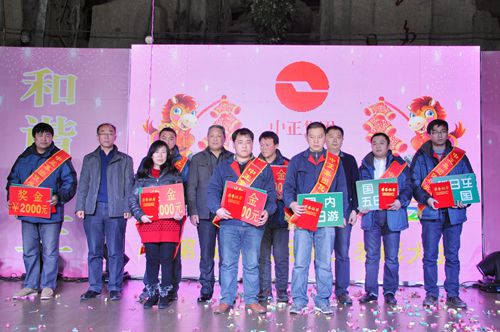 2013年12月29日下午17:00,中正集團(tuán)2014年“和諧中正、幸福家庭”元旦晚會(huì)成功舉辦。集團(tuán)員工及家屬歡聚一堂、其樂融融,共同欣賞精彩紛呈的晚會(huì)節(jié)目,處處洋溢著濃濃的節(jié)日氣氛。晚會(huì)上,集團(tuán)公司副總經(jīng)理王曉東同志致新年賀詞,集團(tuán)公司董事長(zhǎng)李廣法同志、副總經(jīng)理葉恒剛同志、副總經(jīng)理王曉東同志為集團(tuán)2013年度10名優(yōu)秀員工頒獎(jiǎng)。
